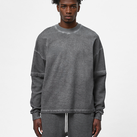 Bán Sỉ Axit Rửa Người Đàn Ông Cổ Điển Của T Áo Sơ Mi Rửa Áo Len Pháp Terry Tùy Chỉnh Thêu Logo O-Cổ T Áo Sơ Mi